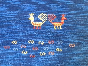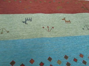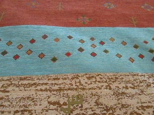 ゴブランエスニック(ストライプ×ギャベ柄)レッド×ブルー