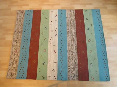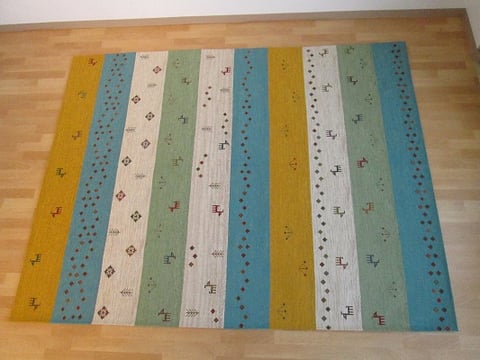 ゴブランエスニック(ストライプ×ギャベ柄)イエロー×ブルー